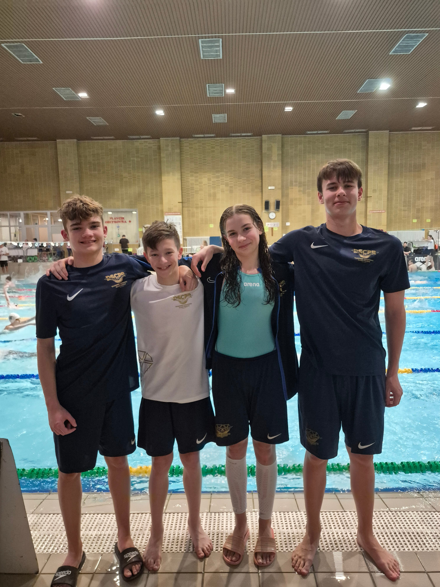 🥉 3. miesto – 4×50 m voľný spôsob chlapci (Toth, Štec, Chovan, Majirský)